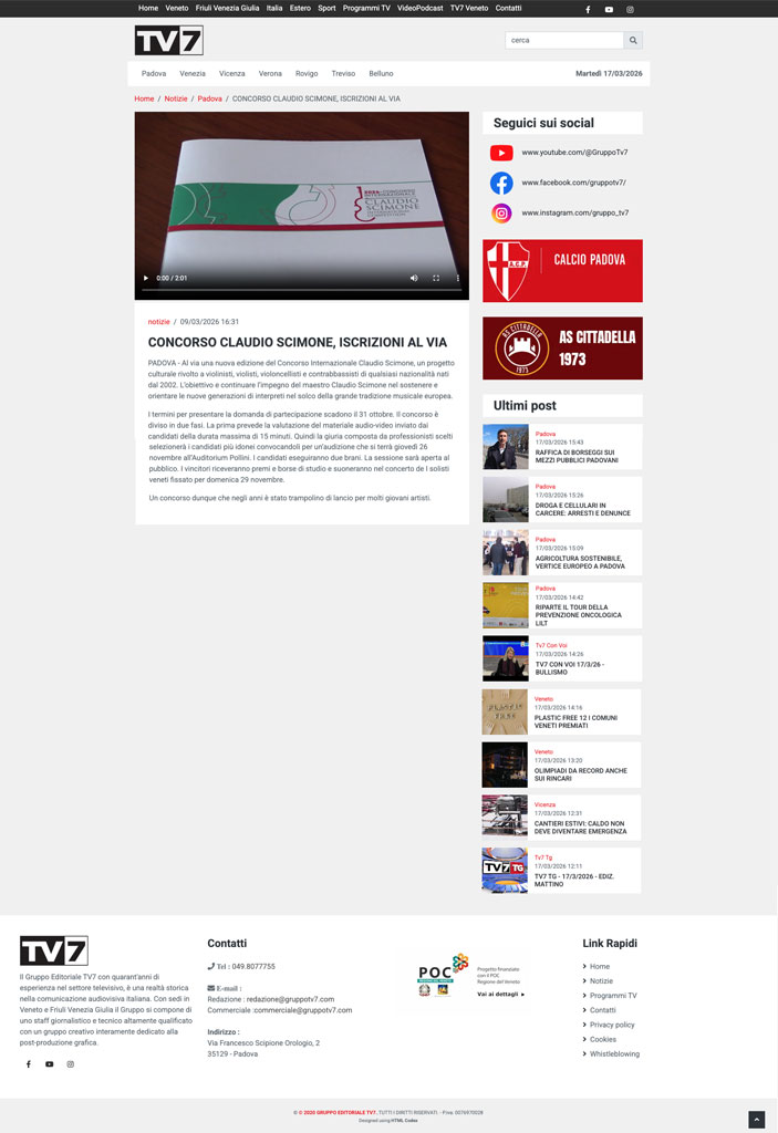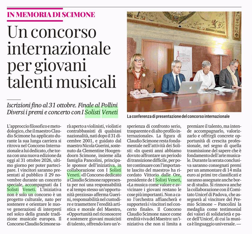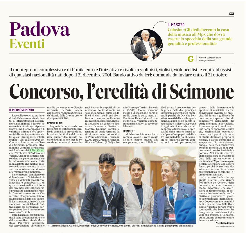 Rassegna Stampa 11/03/2026 Corriere del Veneto Scarica il pdf 11/03/2026 Il Mattino di Padova Scarica il pdf 10/03/2026 Il Gazzettino Scarica il pdf 09/03/2026 TV7 Vai al link Giorno&Notte Scarica il pdf Padova Eventi Scarica il pdf Lettera di Zaia Scarica il pdf Il Gazzettino Scarica il pdf Il Mattino di Padova Scarica pdf Corriere di Verona Scarica il pdf Rivista Musica Settembre 2022 Scarica il pdf Padova Eventi Guarda l'Immagine Giorno&Notte Scarica il pdf